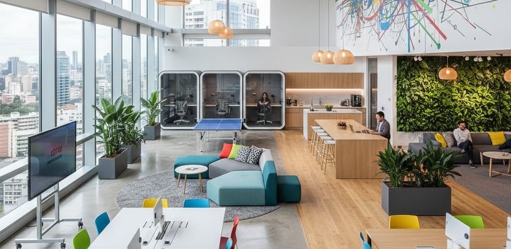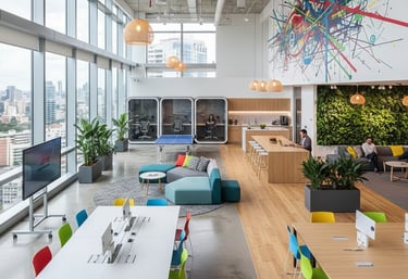 Ambientes de trabalho que inspiram criatividade e produtividade.